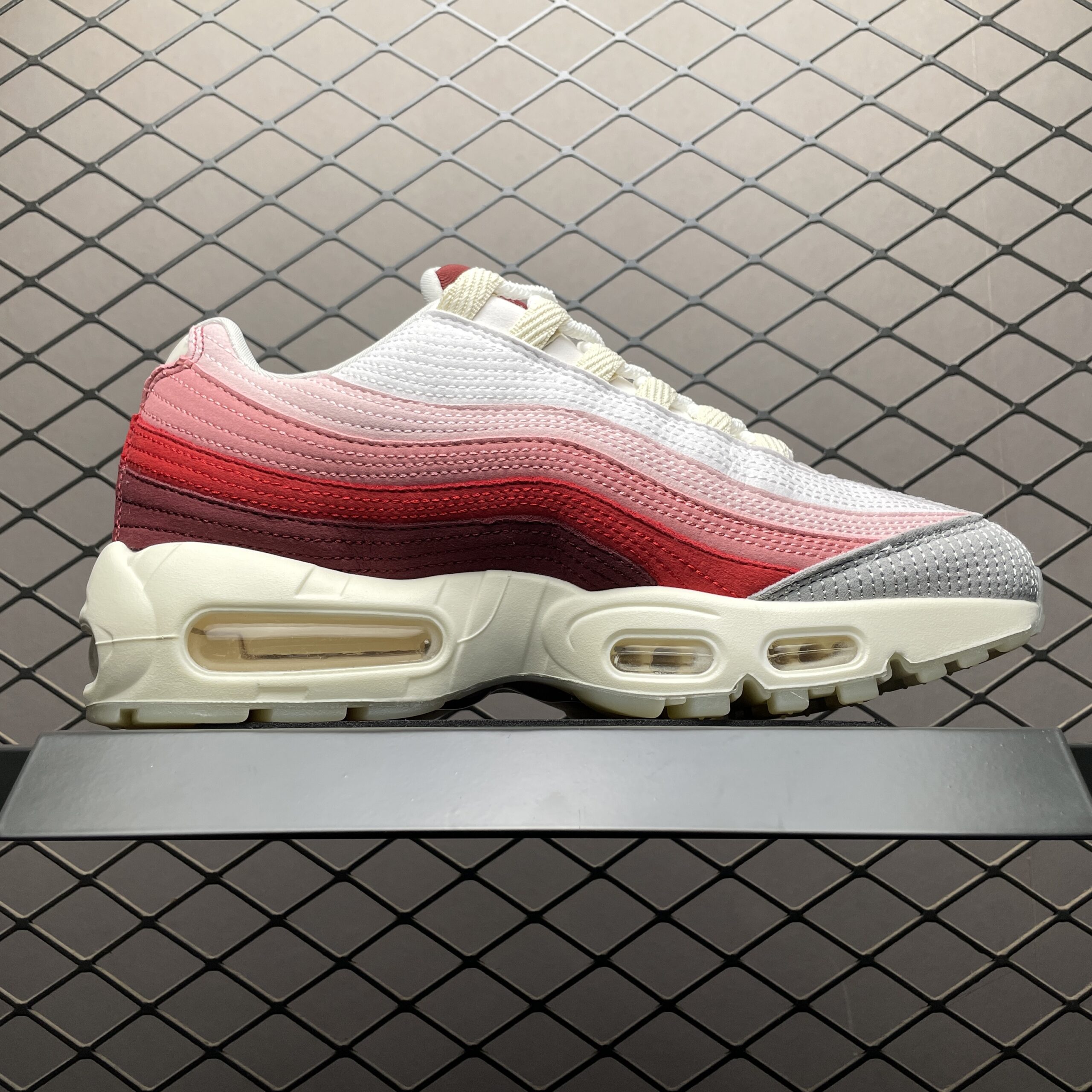La Nike Air Max 95 Anatomy of Air GID DM0012-600 est une édition spéciale de la célèbre gamme Air Max 95, qui se distingue par son design inspiré de l’anatomie humaine et ses détails luminescents. Cette paire arbore une palette de couleurs audacieuses, avec des nuances de rouge et de rose qui rappellent les muscles et les tissus corporels, soulignant l’inspiration anatomique du modèle. La tige est composée de plusieurs couches de matériaux, dont du mesh respirant et du cuir synthétique, offrant à la fois confort et durabilité.