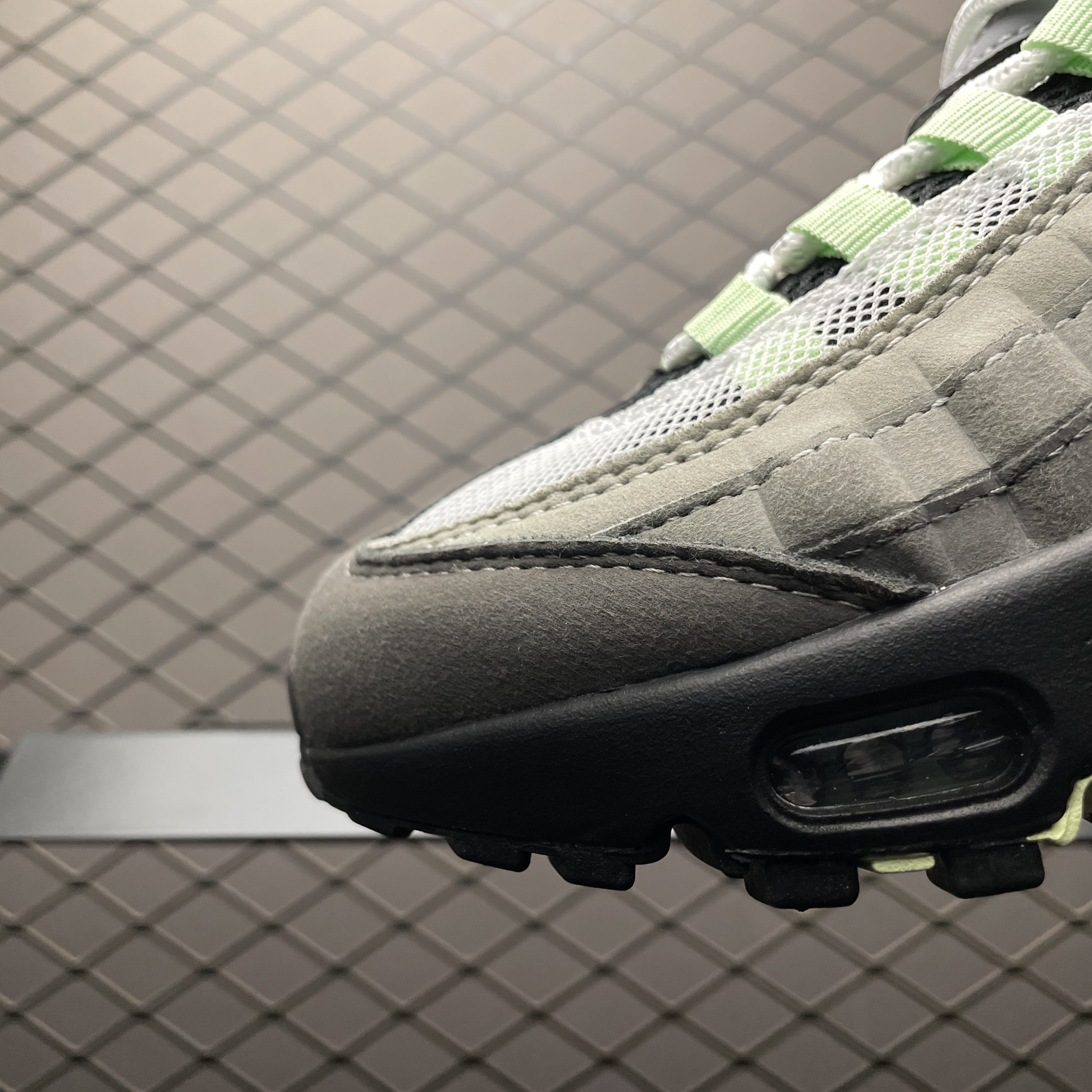 La Nike Air Max 95 OG Fresh Mint CD7495-101 est une paire de baskets emblématique qui allie style rétro et confort moderne. Inspirée par l’anatomie humaine, cette chaussure présente une tige en mesh respirant avec des empiècements en cuir et en daim, offrant à la fois durabilité et esthétique sophistiquée. La palette de couleurs « Fresh Mint » se distingue par des nuances de gris et de noir, rehaussées par des accents de vert menthe frais, apportant une touche de fraîcheur et de dynamisme.