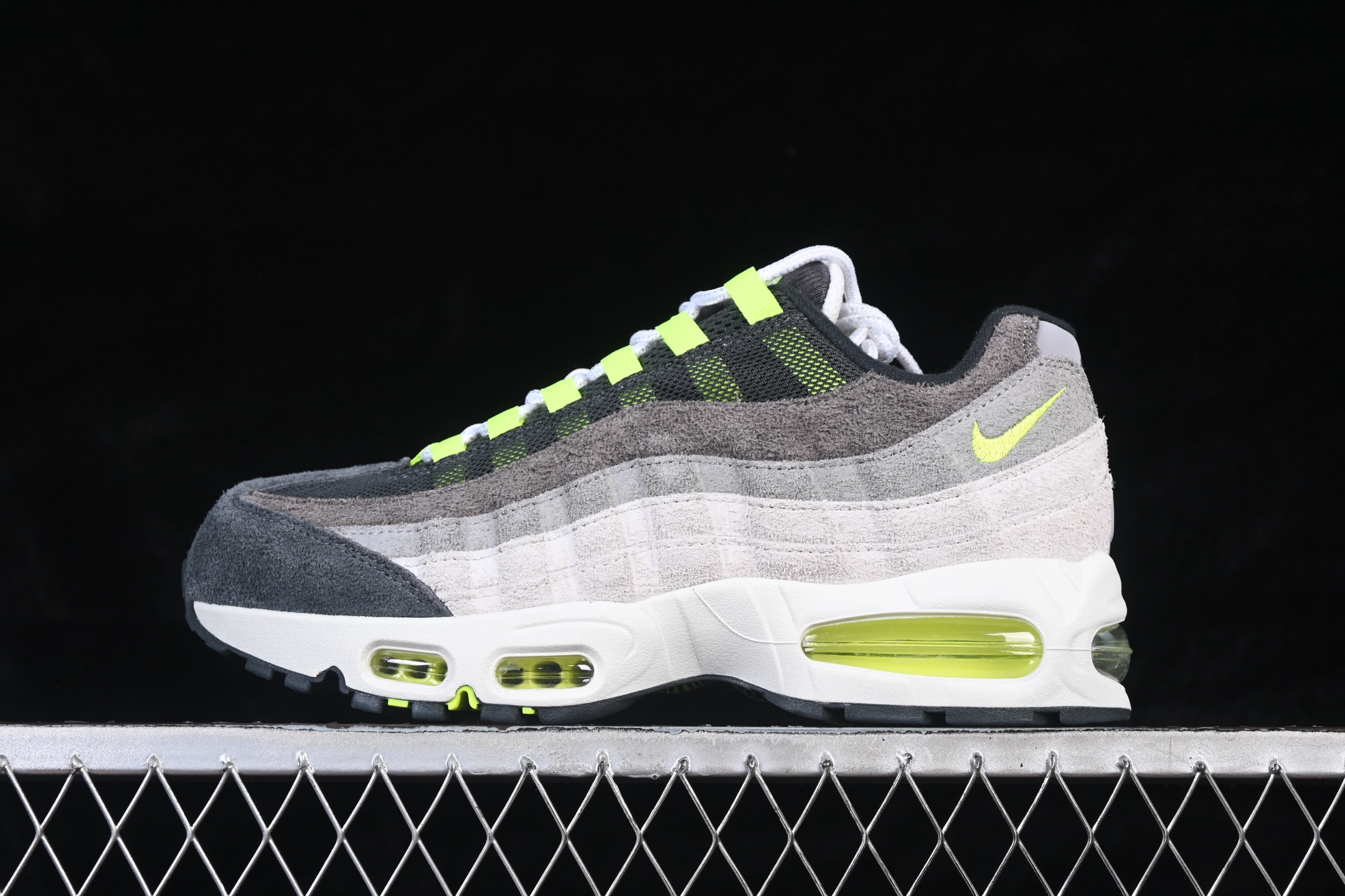 Ce modèle arbore une palette de couleurs néon inversées, avec des tons de gris qui se dégradent du clair au foncé, contrastant avec des accents de néon vibrant. C’est une chaussure qui attire l’attention et met en valeur votre style personnel.
