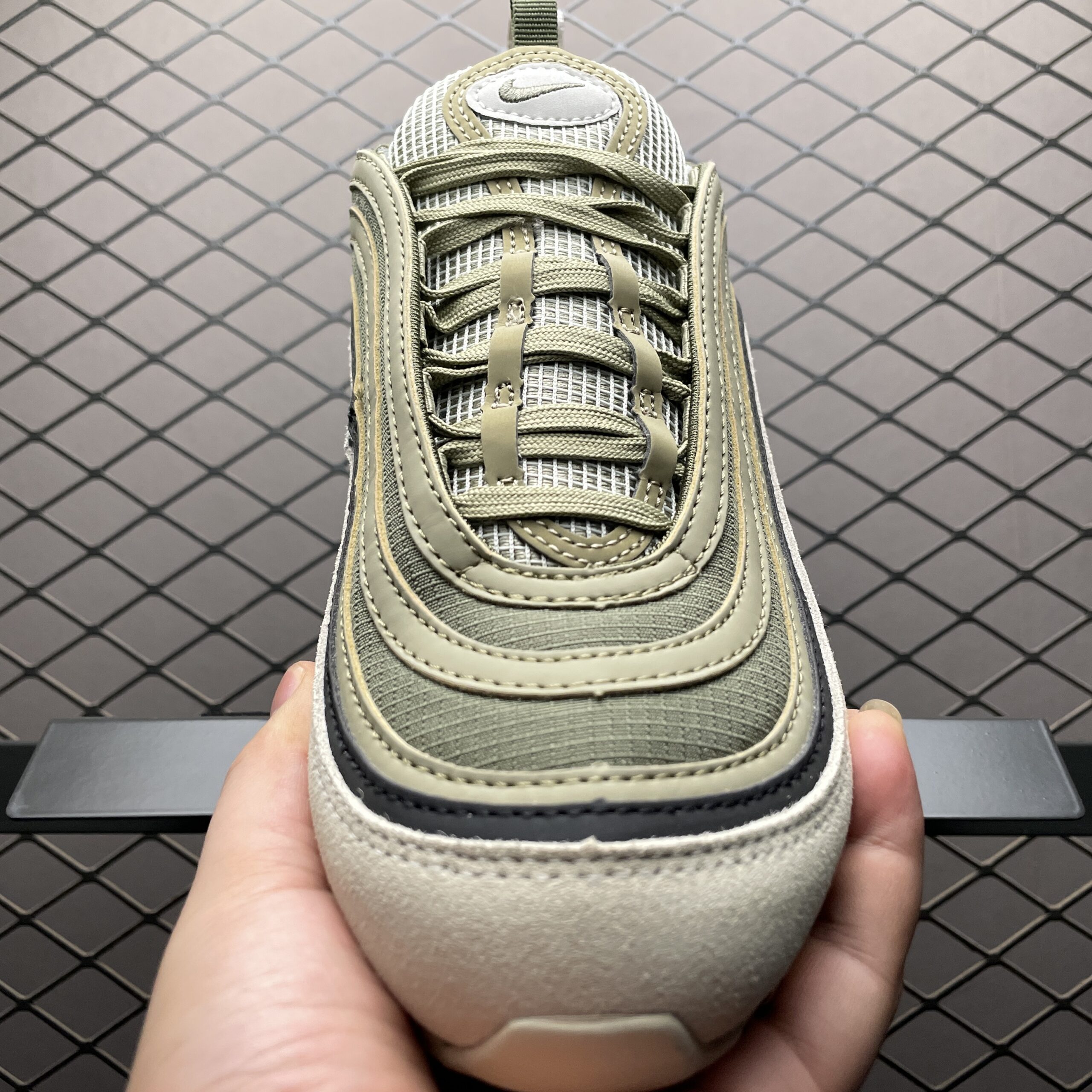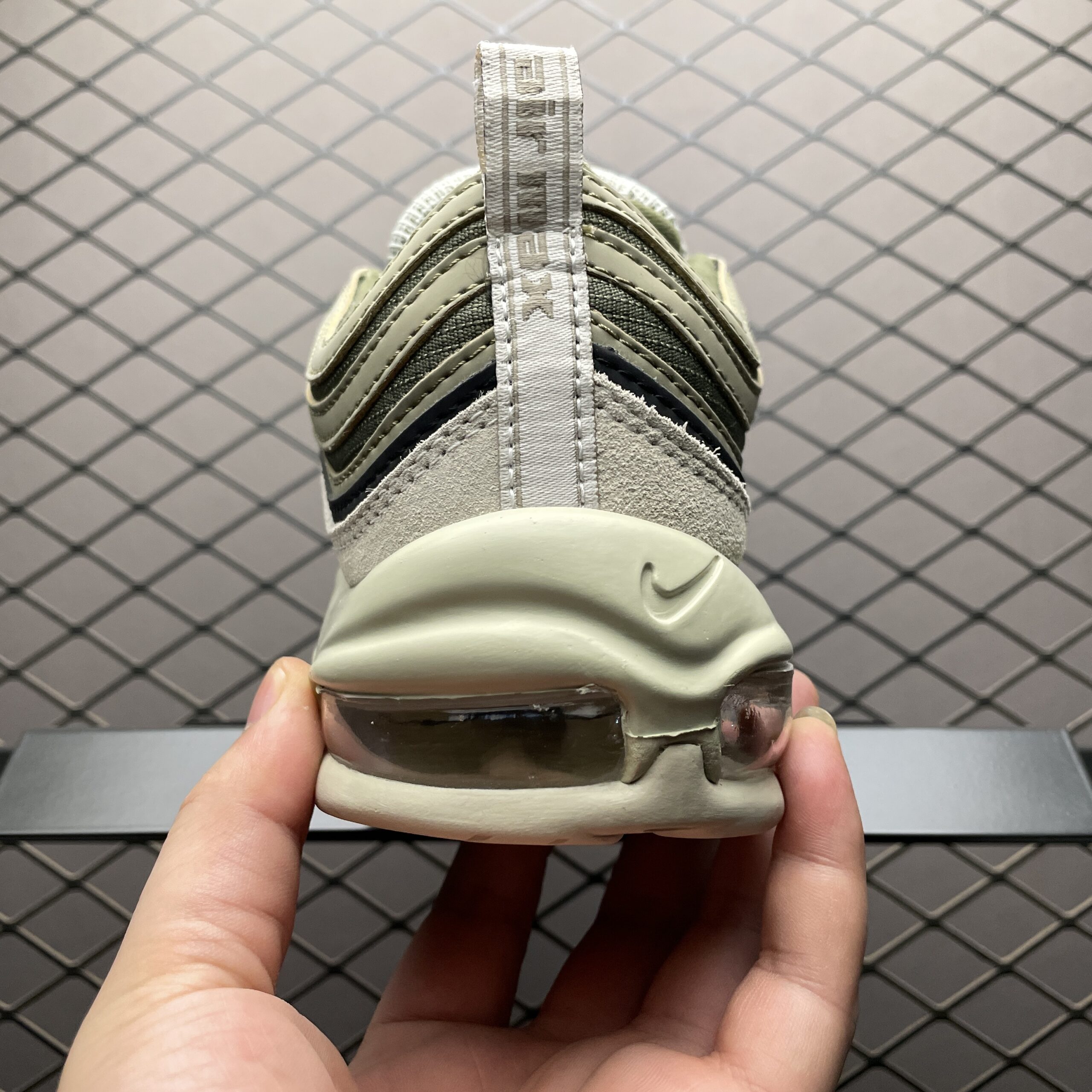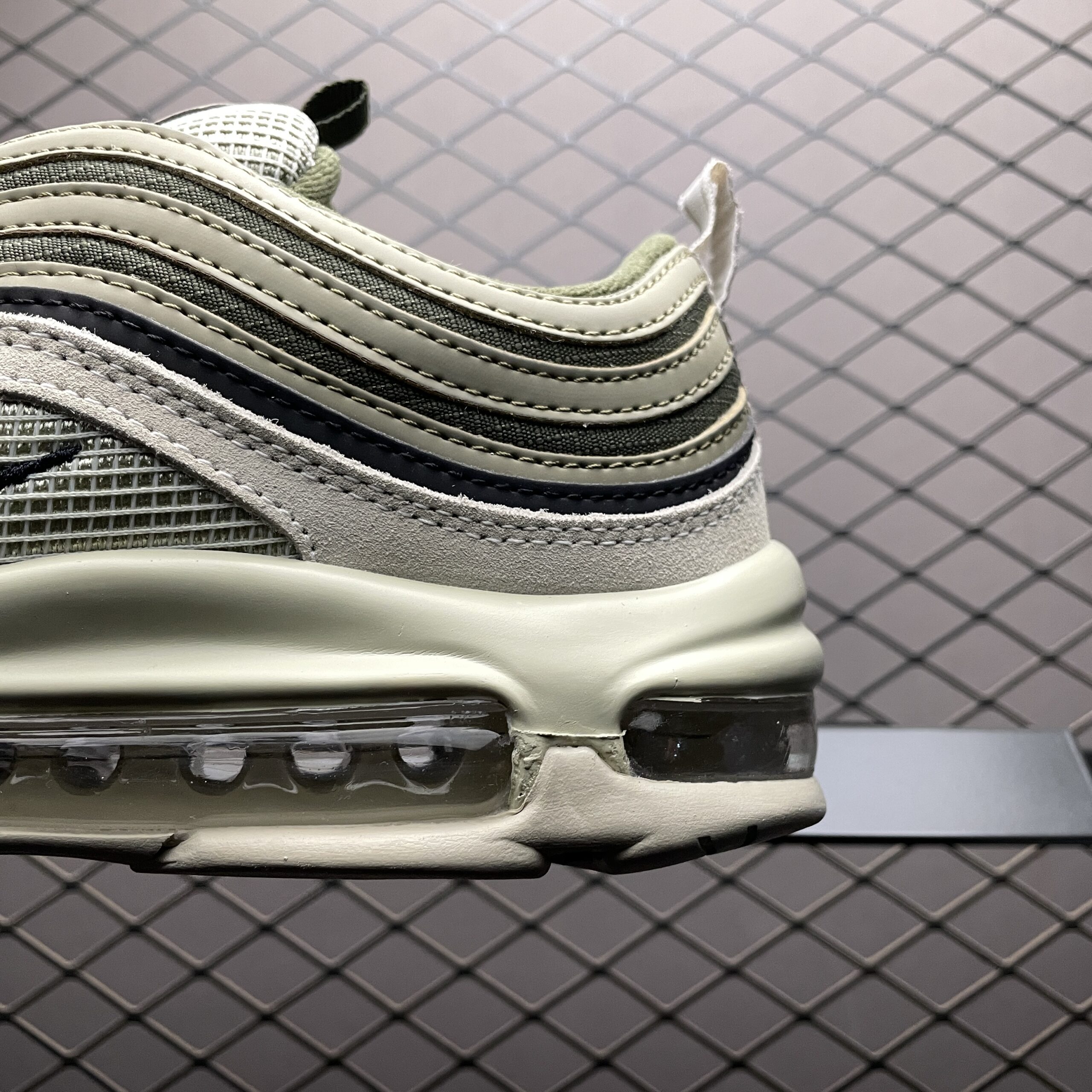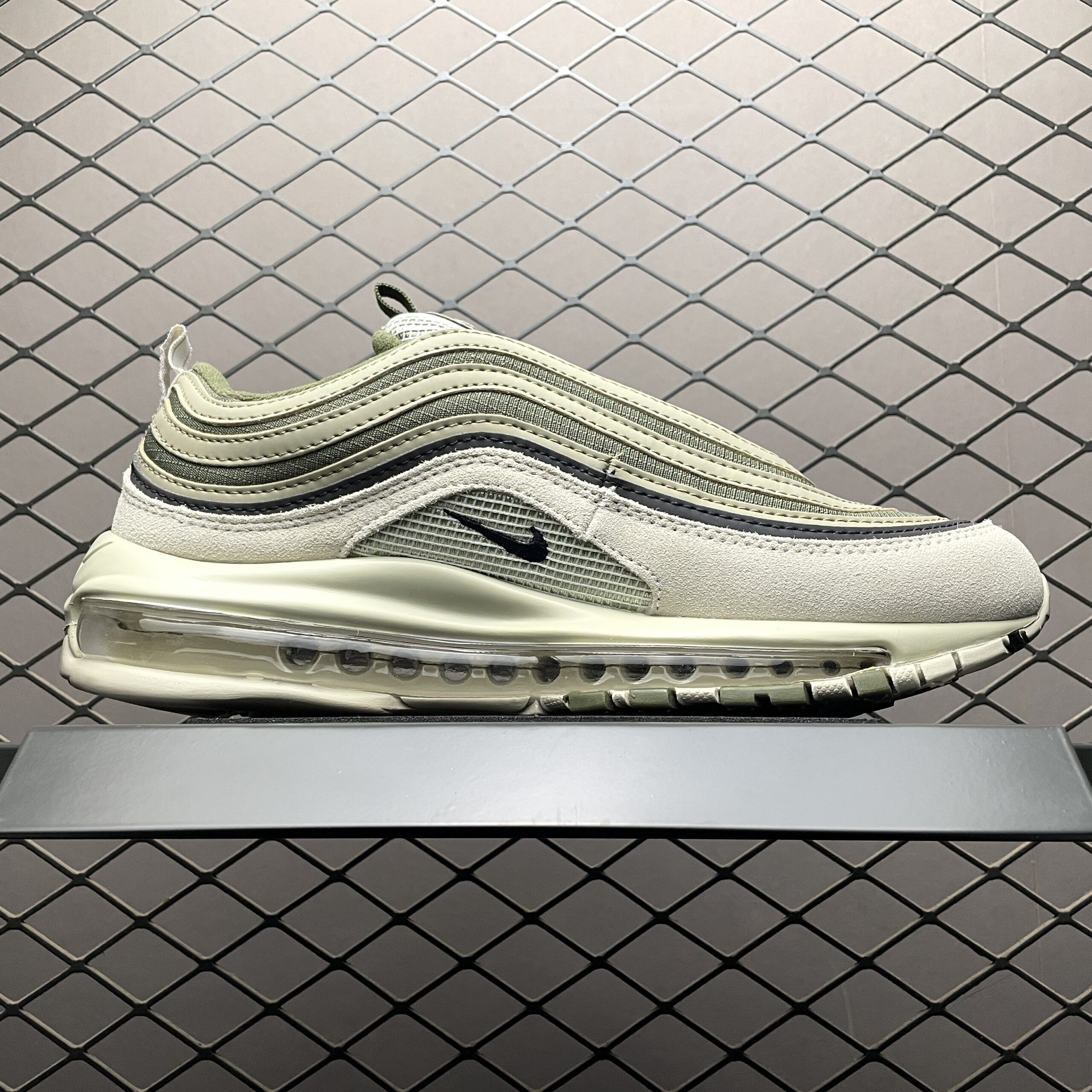 La Nike Air Max 97 SE Light Bone Medium Olive FB9619-002 est une édition spéciale qui allie sobriété et caractère street. Héritière de la silhouette emblématique des années 90, elle conserve les ondulations fluides et la bande réfléchissante qui longe le chaussant, signatures de l’ADN Air Max. Le duo Light Bone et Olive Medium offre un look discret mais élégant: une base claire rehaussée par des touches olive qui apportent de la profondeur sans surcharger le style. Cette combinaison de couleurs la rend parfaitement portable en ville, autant avec un jean que avec des tenues plus neutres ou aérées. Le nom SE suggère une finition spéciale, avec des détails légèrement exclusifs par rapport au modèle standard.