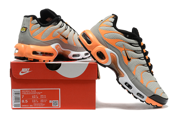 Les détails supplémentaires incluent le logo Nike Swoosh sur les côtés, des lacets ton sur ton, et une languette rembourrée pour un ajustement confortable. La Nike Air Max Plus Grey Orange DM0032-001 est parfaite pour ceux qui recherchent une chaussure à la fois fonctionnelle et stylée, adaptée aussi bien pour le sport que pour un usage quotidien.