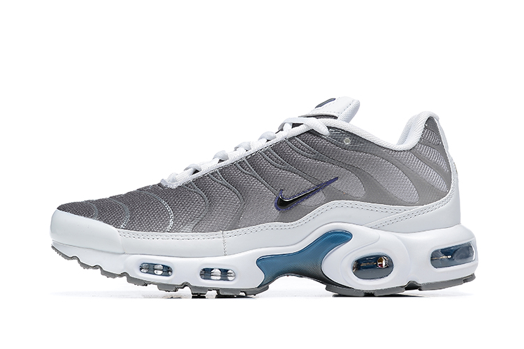 La tige de la chaussure est fabriquée en mesh respirant, assurant une ventilation optimale pour garder vos pieds au frais tout au long de la journée. Des superpositions en cuir synthétique ajoutent une dimension de durabilité et de soutien, tout en accentuant le design dynamique de la chaussure. Les emblématiques lignes ondulées, caractéristiques de la Air Max Plus, sont présentes, apportant une touche de mouvement et de fluidité au modèle.