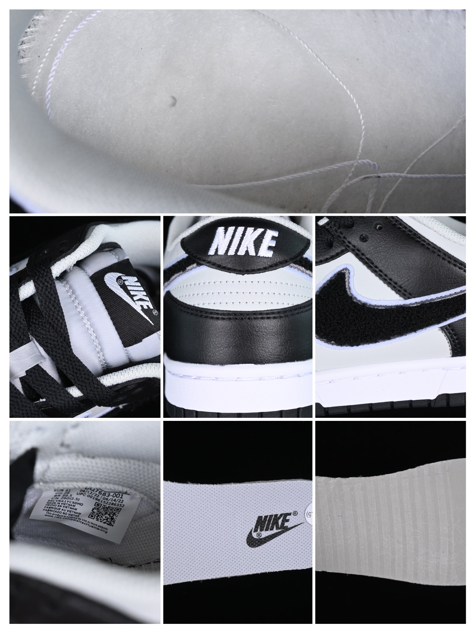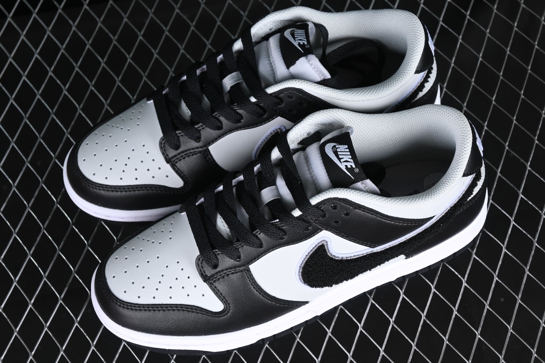 La Nike Dunk Low Chenille Swoosh Black Grey DQ7683-001 est une paire de baskets de la marque Nike. Elle présente une combinaison de couleurs noire et grise. La tige de la chaussure est principalement noire, avec des accents de gris sur le logo Swoosh de Nike, qui est réalisé en chenille. La chenille apporte une texture unique à la chaussure, lui donnant un aspect original et distinctif. La semelle intermédiaire est blanche, contrastant avec le reste de la chaussure. La semelle extérieure est en caoutchouc, offrant une adhérence optimale. La Nike Dunk Low Chenille Swoosh Black Grey DQ7683-001 est à la fois élégante et confortable, idéale pour compléter un look décontracté ou sportif.