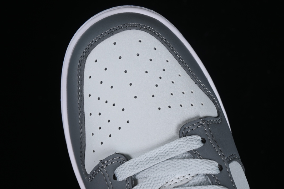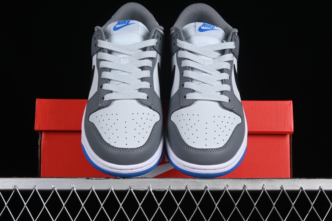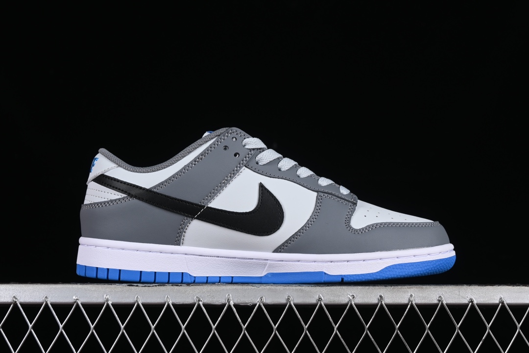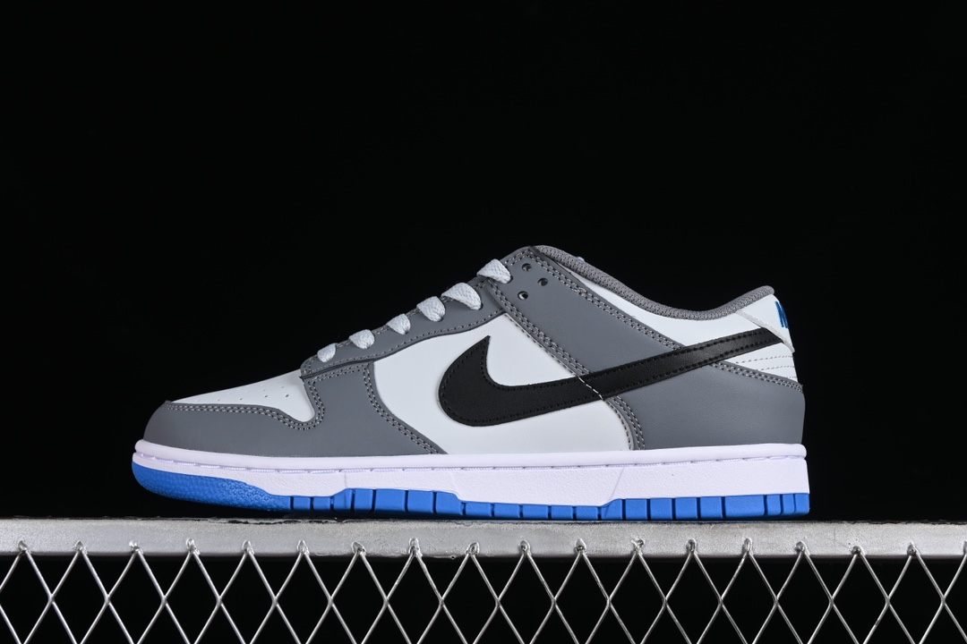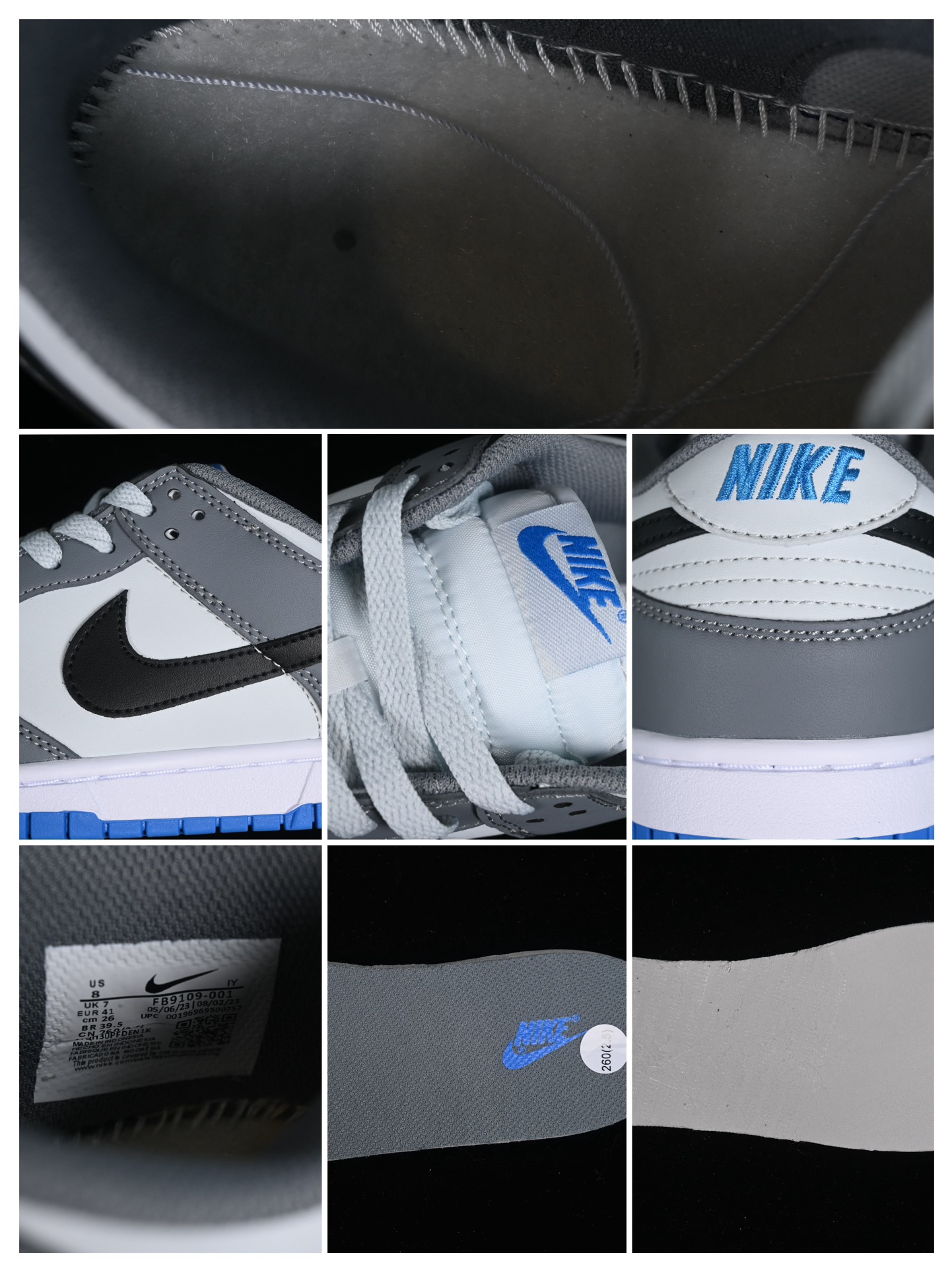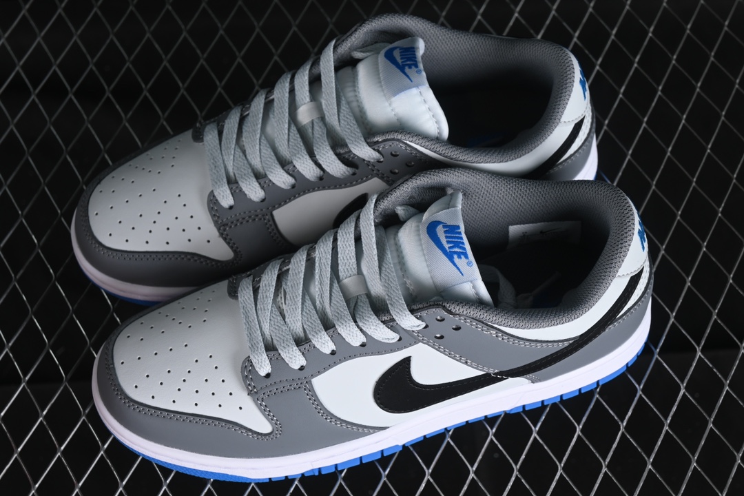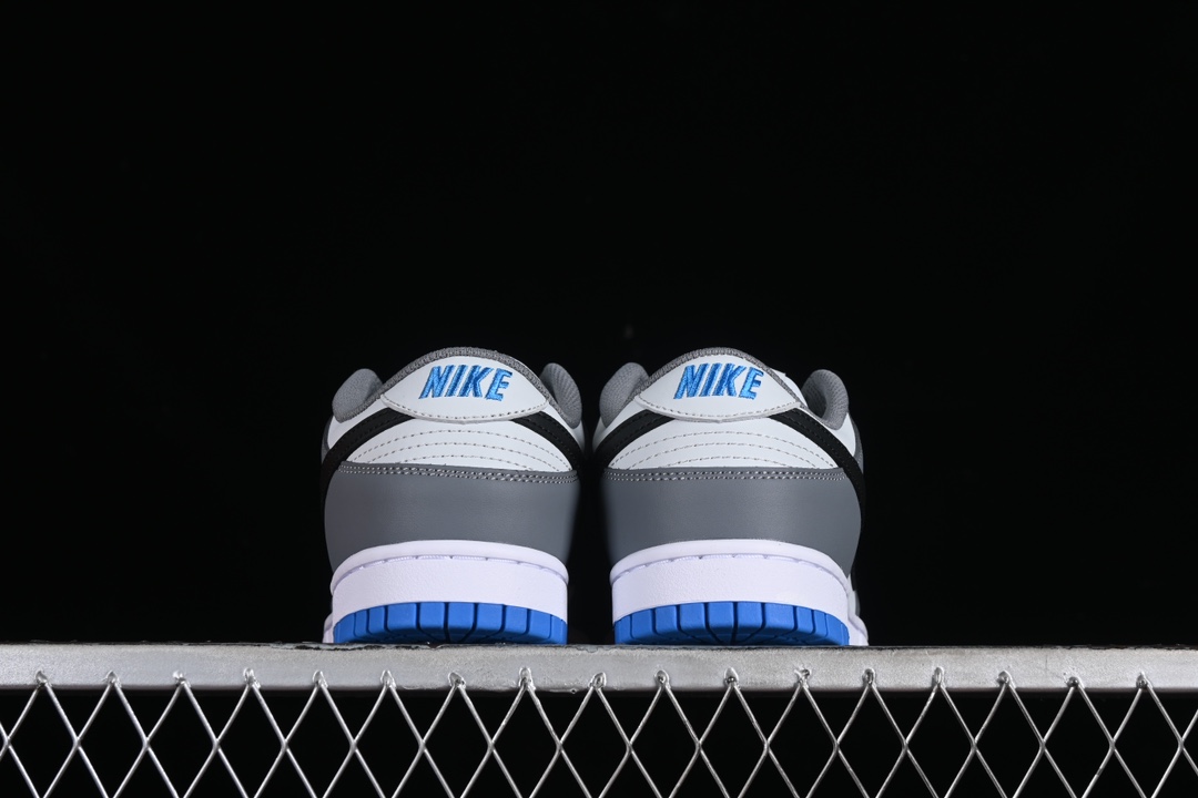 La Nike Dunk Low « Cool Grey Light Photo Blue » FB9109-001 est une sneaker basse qui combine des éléments de design classique avec des touches modernes. Le modèle présente une palette de couleurs principalement grise, connue sous le nom de « Cool Grey », qui couvre la majorité de la tige. Cette teinte de gris est complétée par des accents de bleu clair, appelé « Light Photo Blue », qui apparaissent sur les swoosh (logos Nike), la languette de la chaussure, et d’autres détails mineurs.