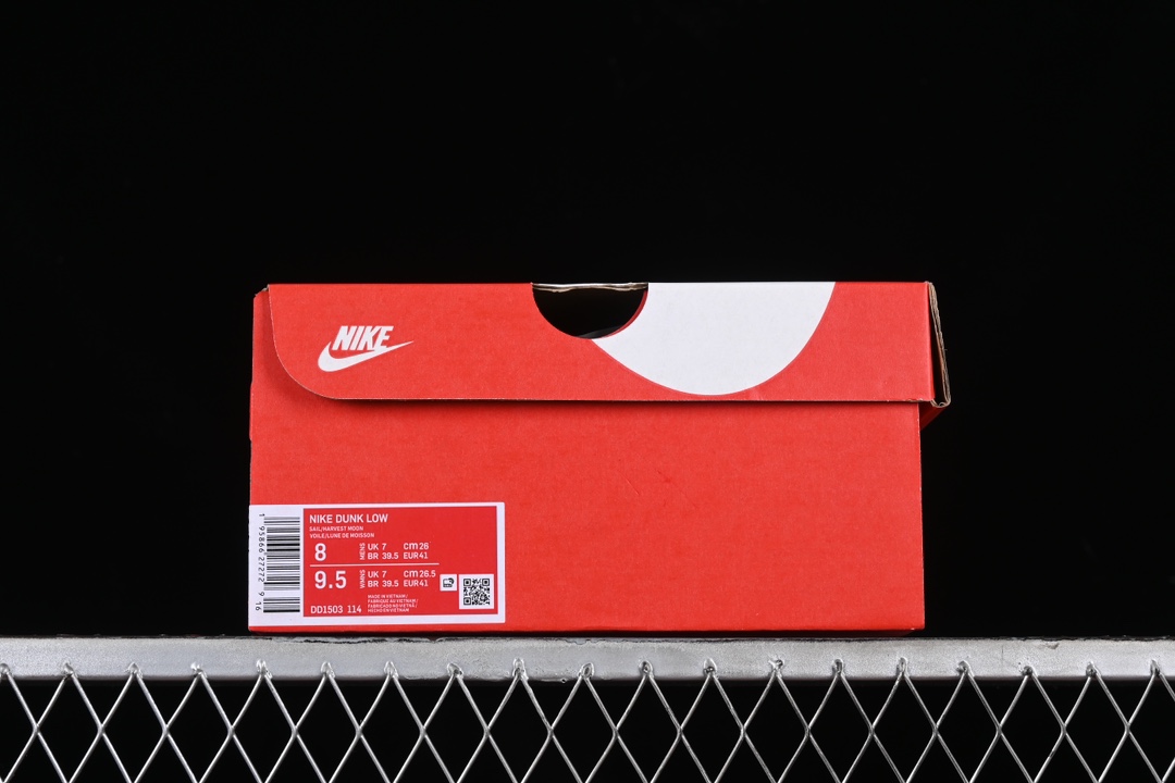 La Nike Dunk Low Harvest Moon DD1503-114 est une chaussure de sport de la marque Nike. Elle présente un design bas, avec une tige en cuir de couleur blanche et des empiècements en daim de couleur beige clair. La chaussure est dotée d’une languette rembourrée pour un confort optimal et d’une fermeture à lacets pour un ajustement personnalisé. Le logo Nike est visible sur les côtés de la chaussure, ainsi que sur la languette et le talon. La semelle extérieure en caoutchouc offre une adhérence et une durabilité accrues. La Nike Dunk Low Harvest Moon DD1503-114 est un choix élégant et polyvalent pour les amateurs de sneakers.