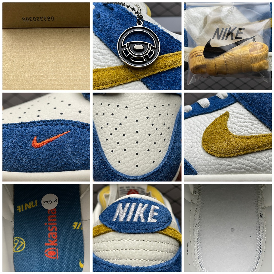 Le Nike Dunk Low Kasina Industrial Blue CZ6501-100 est une édition limitée qui hérite de l’allure emblématique de la Dunk Low tout en portant l’empreinte distinctive de Kasina, la boutique de streetwear chère à la scène sneaker. Le coloris Industrial Blue prend le devant de la scène avec des nuances de bleu qui s’entrelacent sur l’empeigne en cuir, contrastées par des détails blancs et par le Swoosh qui suit le ton de l’ensemble. À l’arrière, le branding Kasina sur le talon et les inscriptions discrètes sur la languette signent une pièce qui parle autant au collectionneur qu’au simple amateur de style rétro. Dans l’ensemble, cette chaussure mêle simplicité et caractère, prête à s’imposer dans une rotation casual.