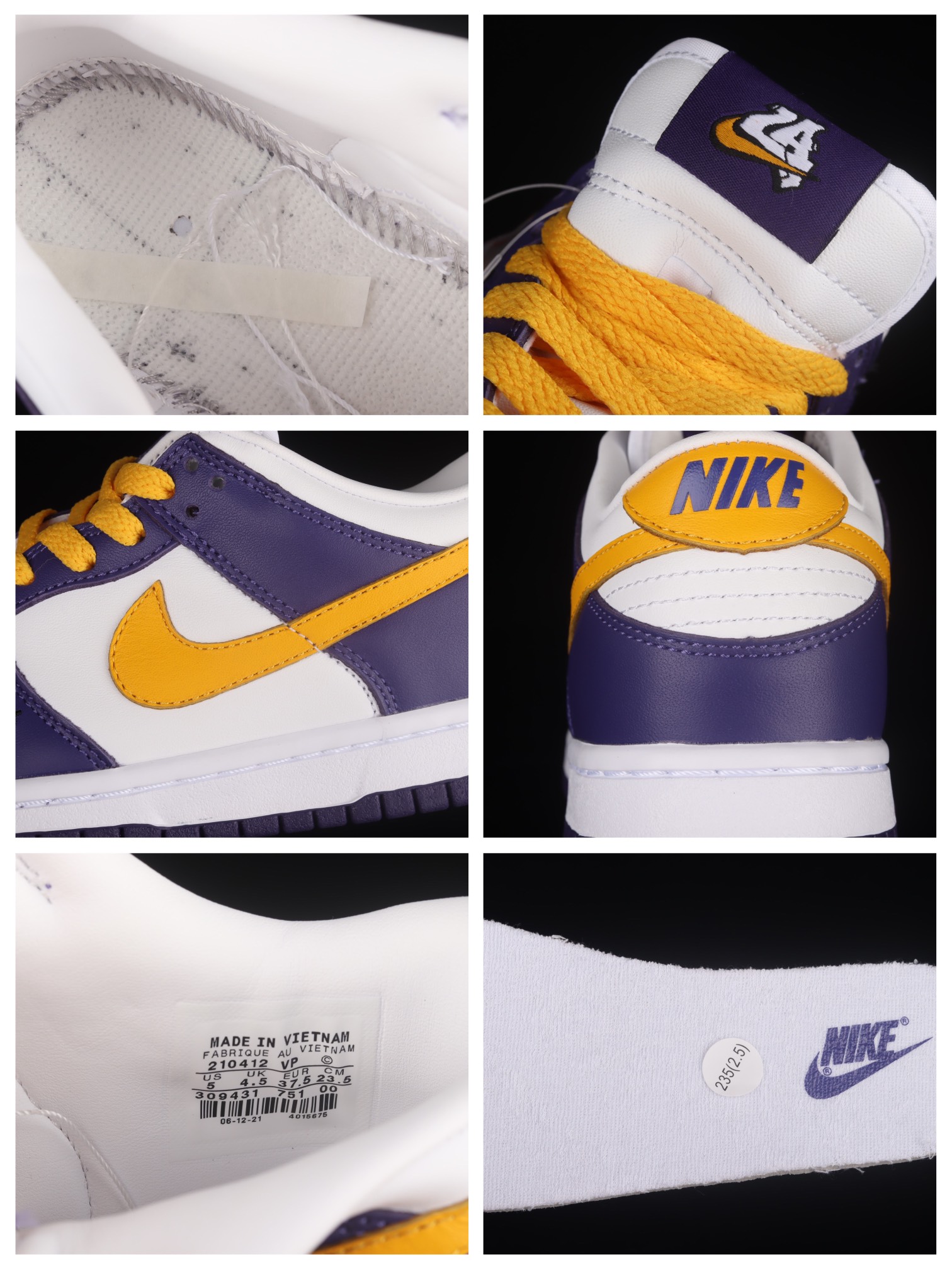 La Nike Dunk Low ‘LA’ Del Sol/Court Purple 309431-751 est une chaussure de sport de la marque Nike. Elle présente une combinaison de couleurs Del Sol (jaune) et Court Purple (violet) qui lui confère un look distinctif. La tige de la chaussure est principalement en cuir, ce qui lui donne une apparence élégante et durable. La semelle intermédiaire est dotée de la technologie Nike Air, offrant un amorti et un confort supplémentaires lors de la marche ou de la pratique d’activités sportives. Les lacets permettent un ajustement personnalisé, tandis que la semelle extérieure en caoutchouc offre une adhérence optimale sur différentes surfaces. La Nike Dunk Low ‘LA’ Del Sol/Court Purple 309431-751 est un choix idéal pour les amateurs de sneakers à la recherche d’un modèle à la fois stylé et performant.