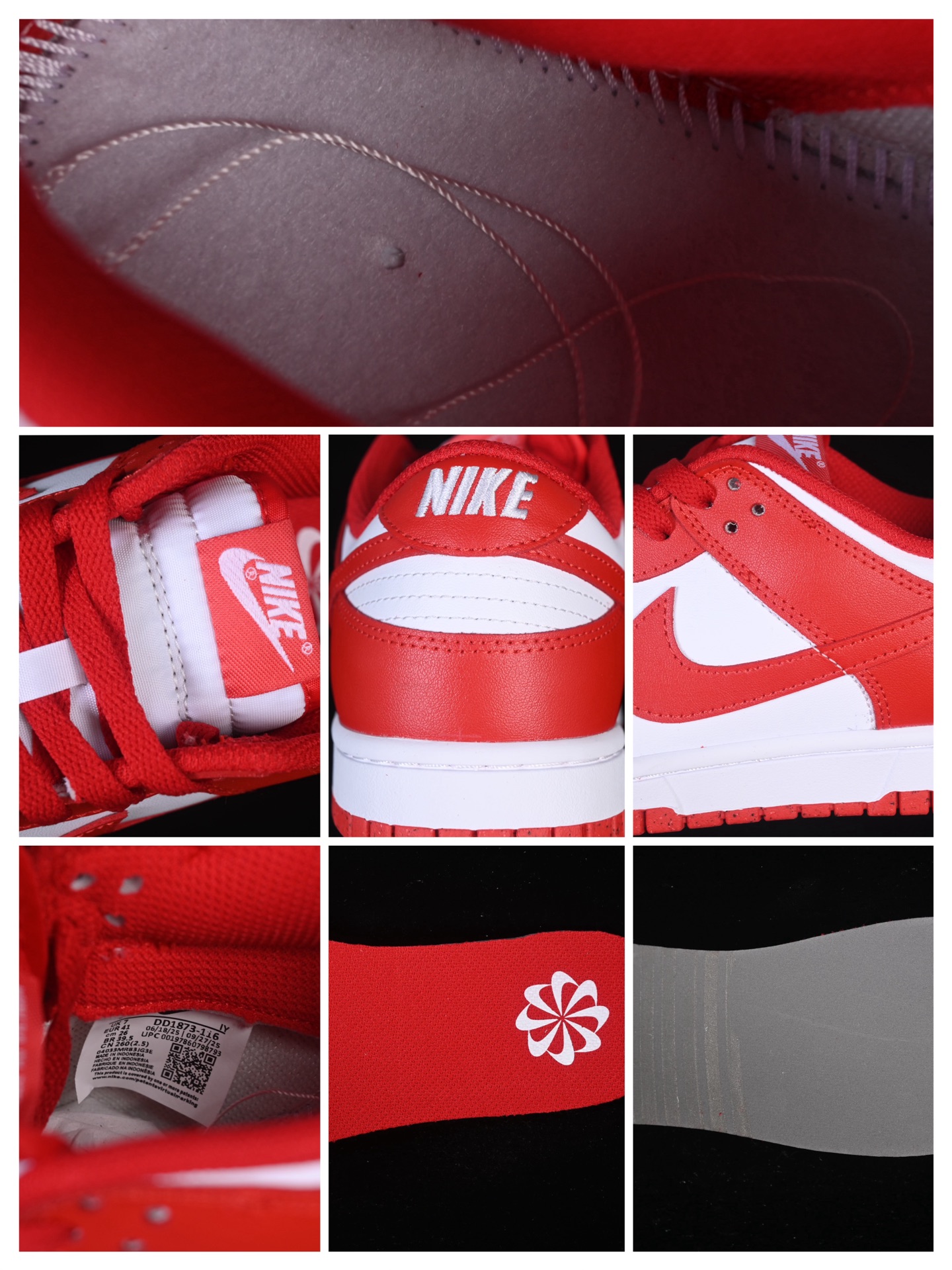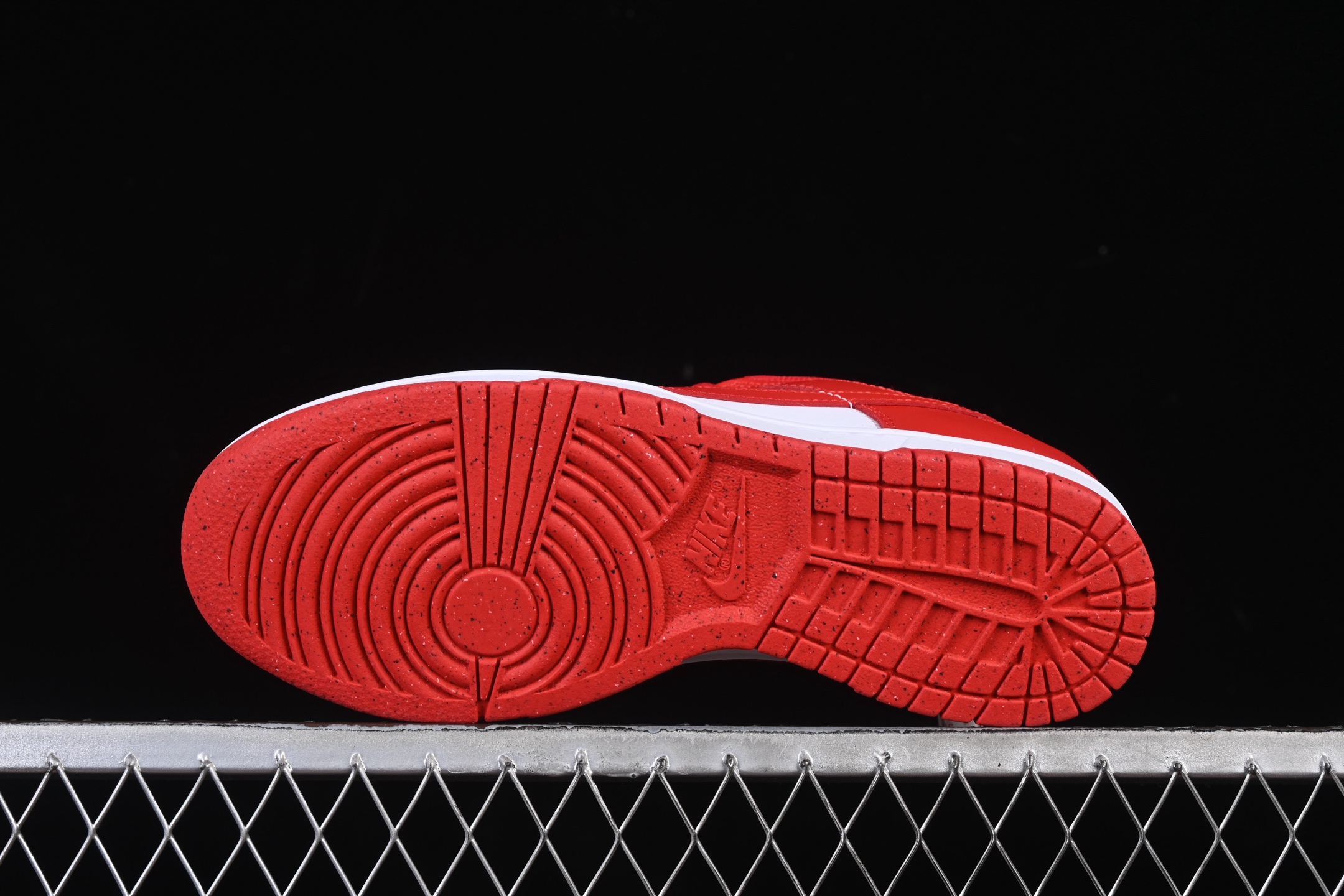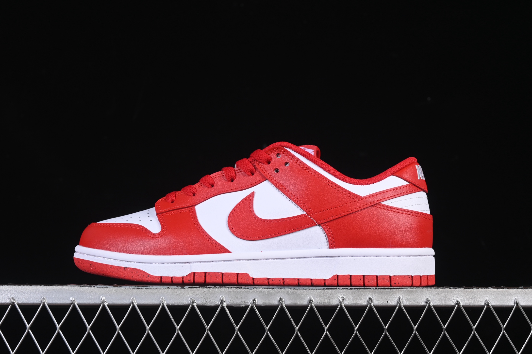 Ce modèle s’inspire du design original des Nike Dunk Low, un classique de la gamme de baskets Nike. L’éclatante couleur rouge St. John’s, combinée au blanc pur, crée une allure audacieuse qui ne passe pas inaperçue. Les détails en cuir ajoutent une touche de luxe, tandis que le logo Nike emblématique sur le côté garantit une reconnaissance instantanée.