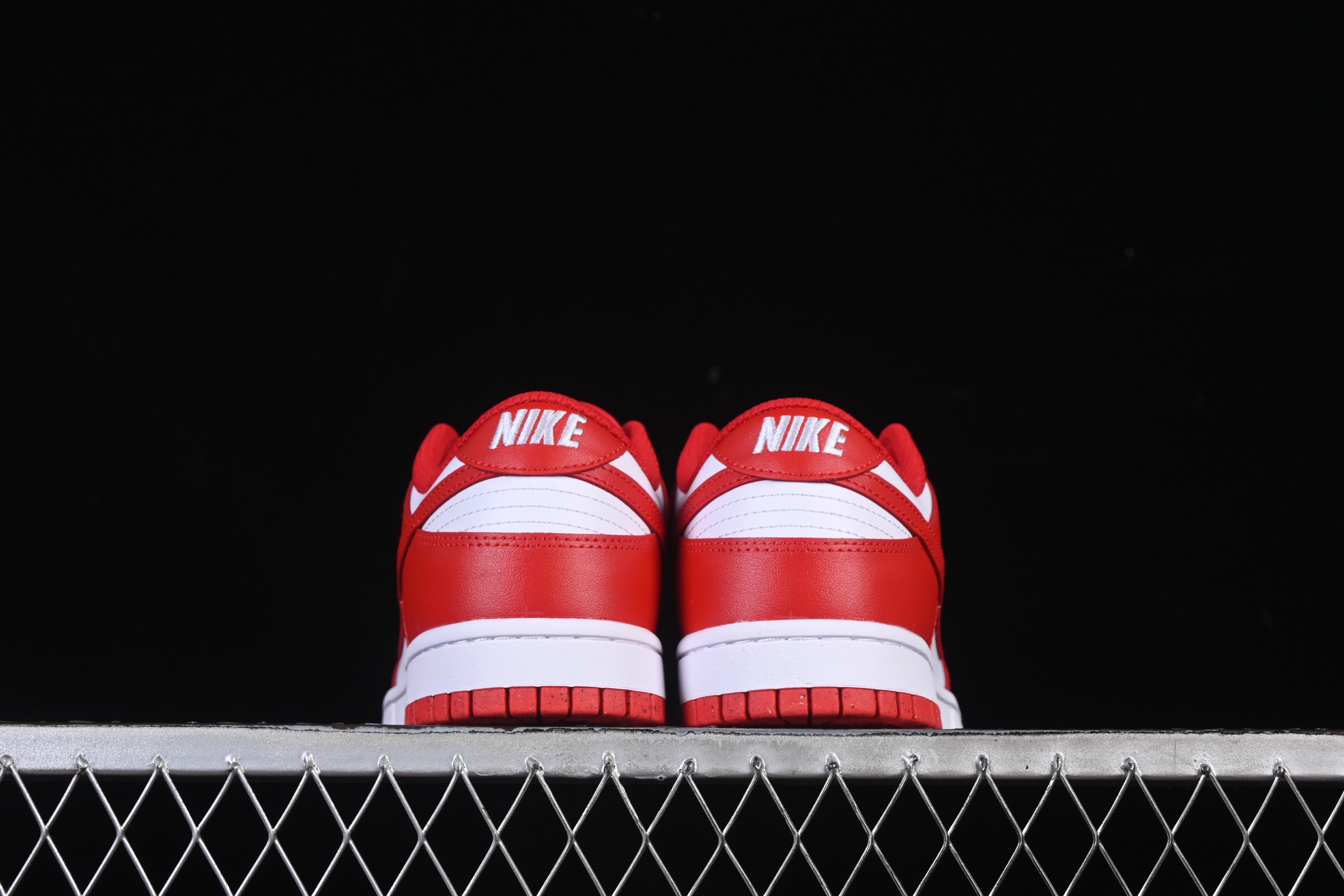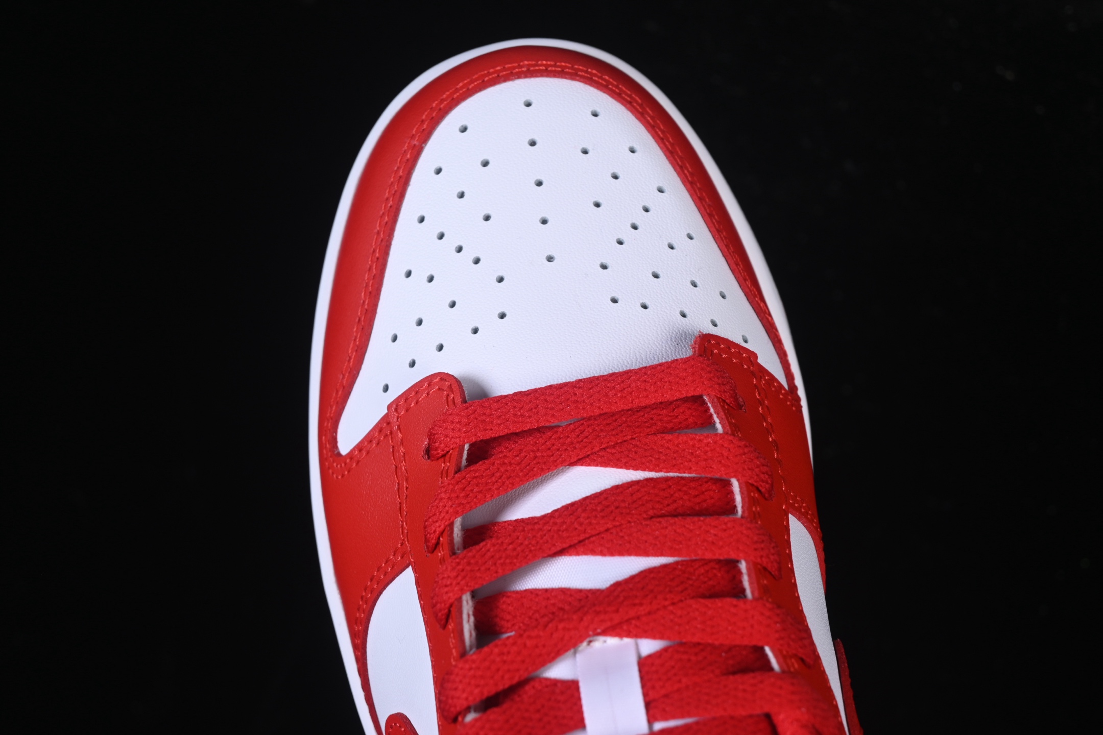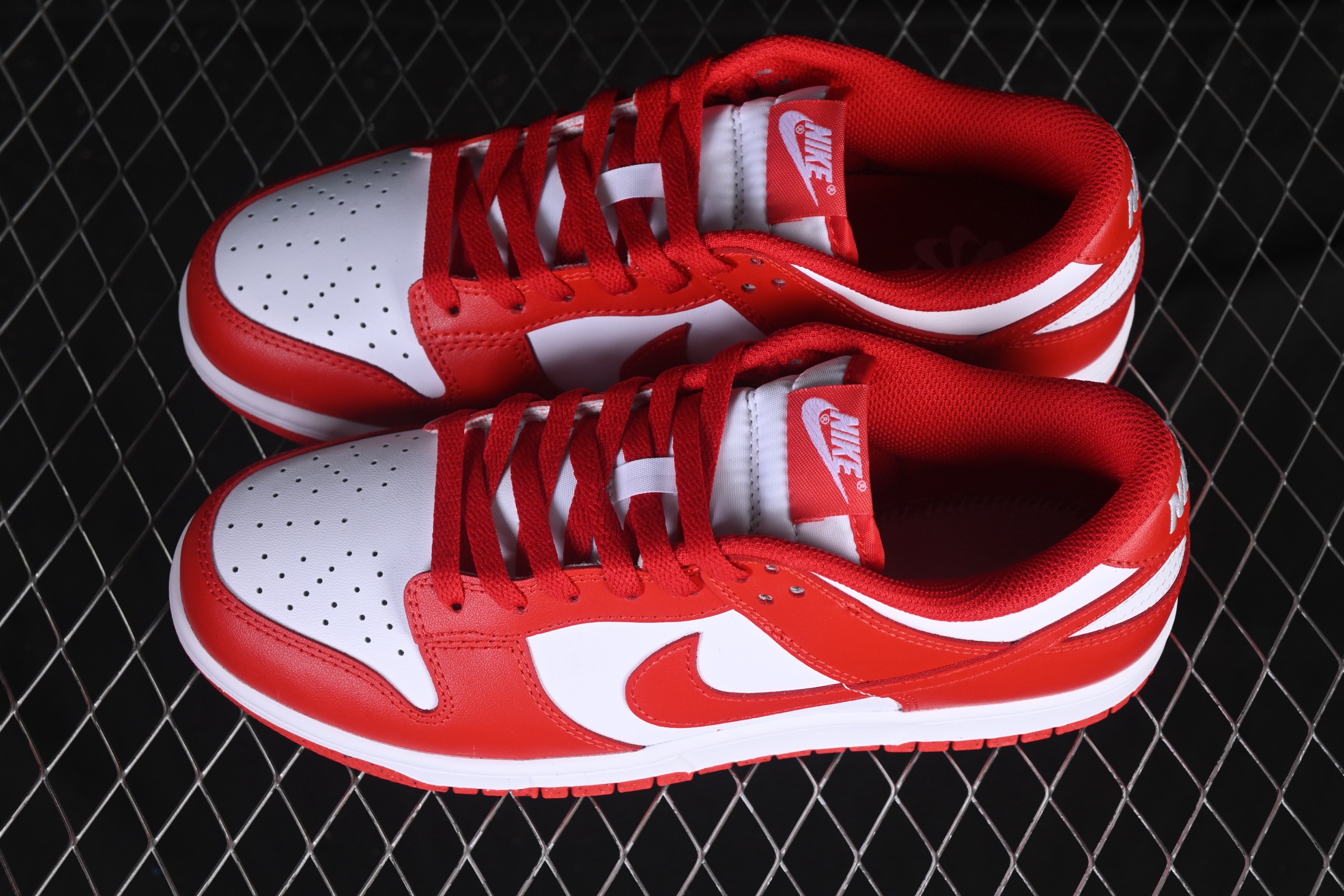 Ce modèle s’inspire du design original des Nike Dunk Low, un classique de la gamme de baskets Nike. L’éclatante couleur rouge St. John’s, combinée au blanc pur, crée une allure audacieuse qui ne passe pas inaperçue. Les détails en cuir ajoutent une touche de luxe, tandis que le logo Nike emblématique sur le côté garantit une reconnaissance instantanée.