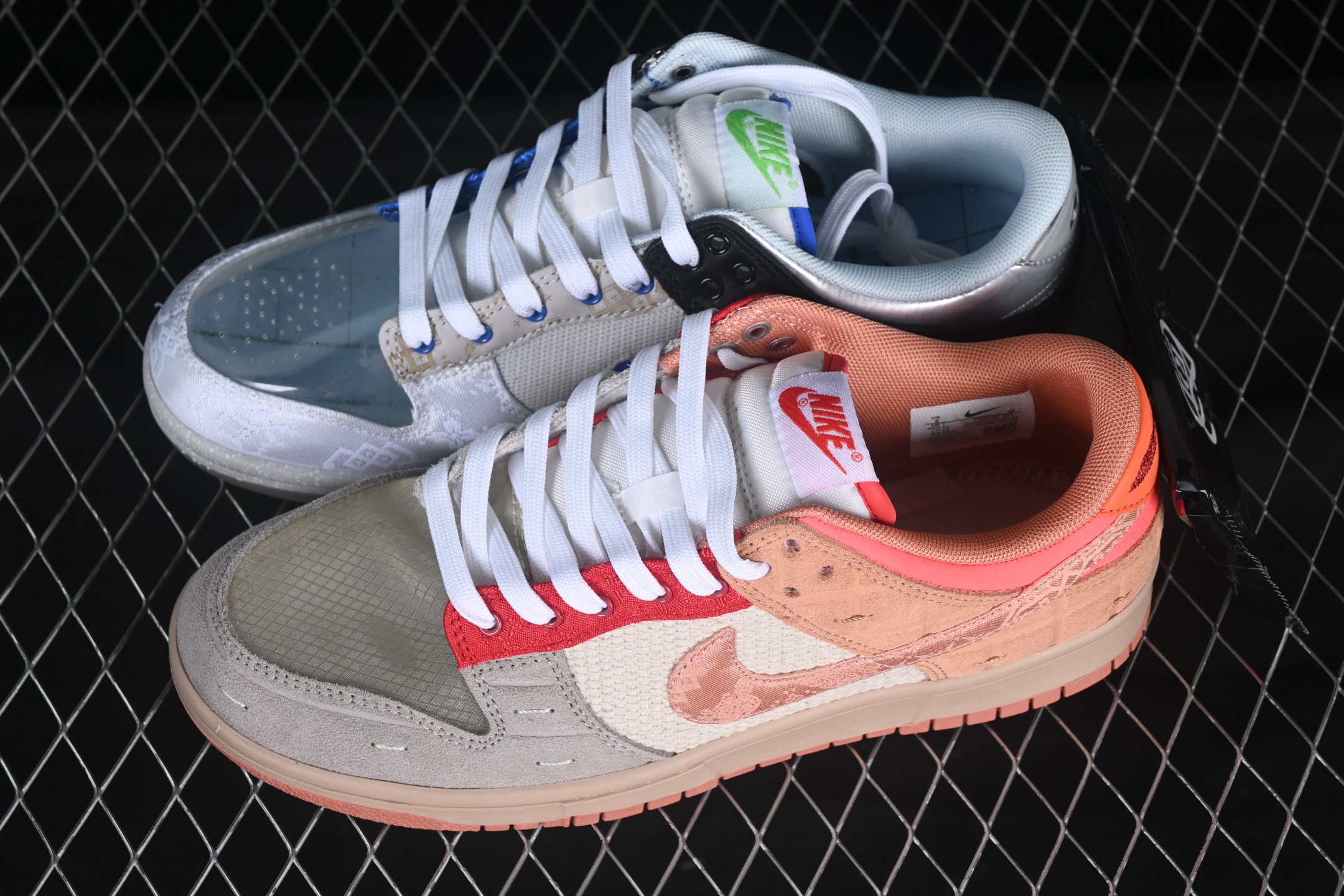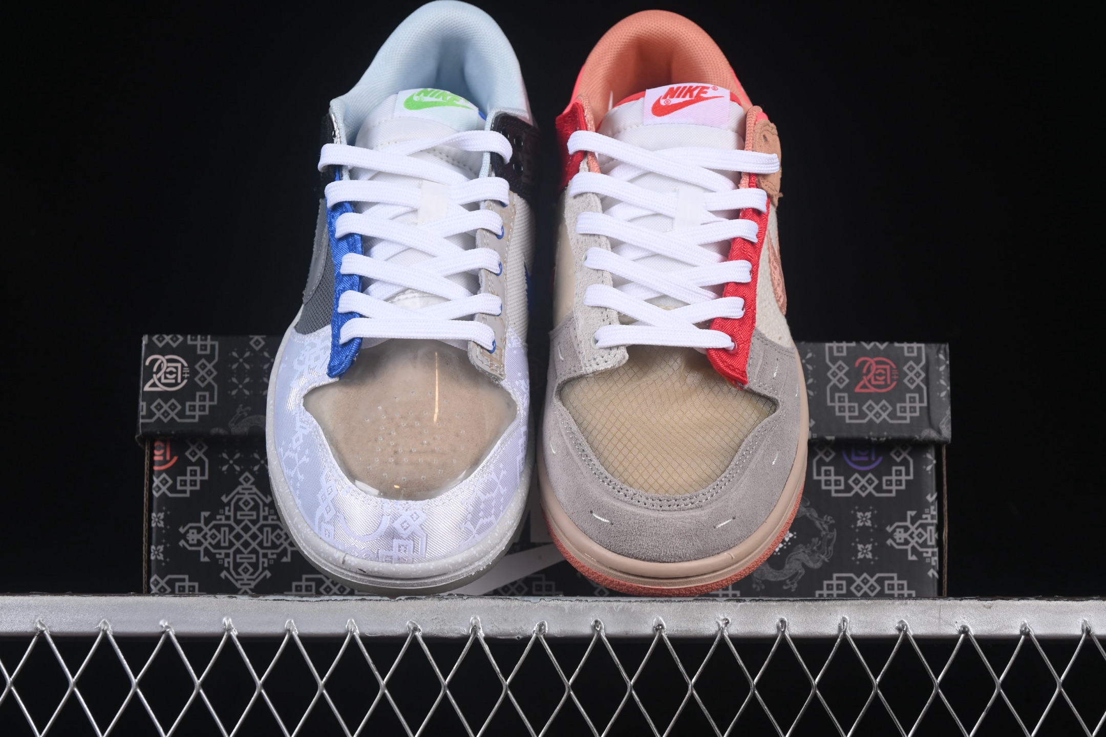 La Nike Dunk Low SP « What The CLOT » FN0316-999 est une édition spéciale qui incarne l’esprit de la collaboration entre Nike et la marque CLOT, fondée par Edison Chen et Kevin Poon. Ce modèle se distingue par son design audacieux et éclectique, qui fusionne divers éléments emblématiques des précédentes collaborations entre Nike et CLOT.