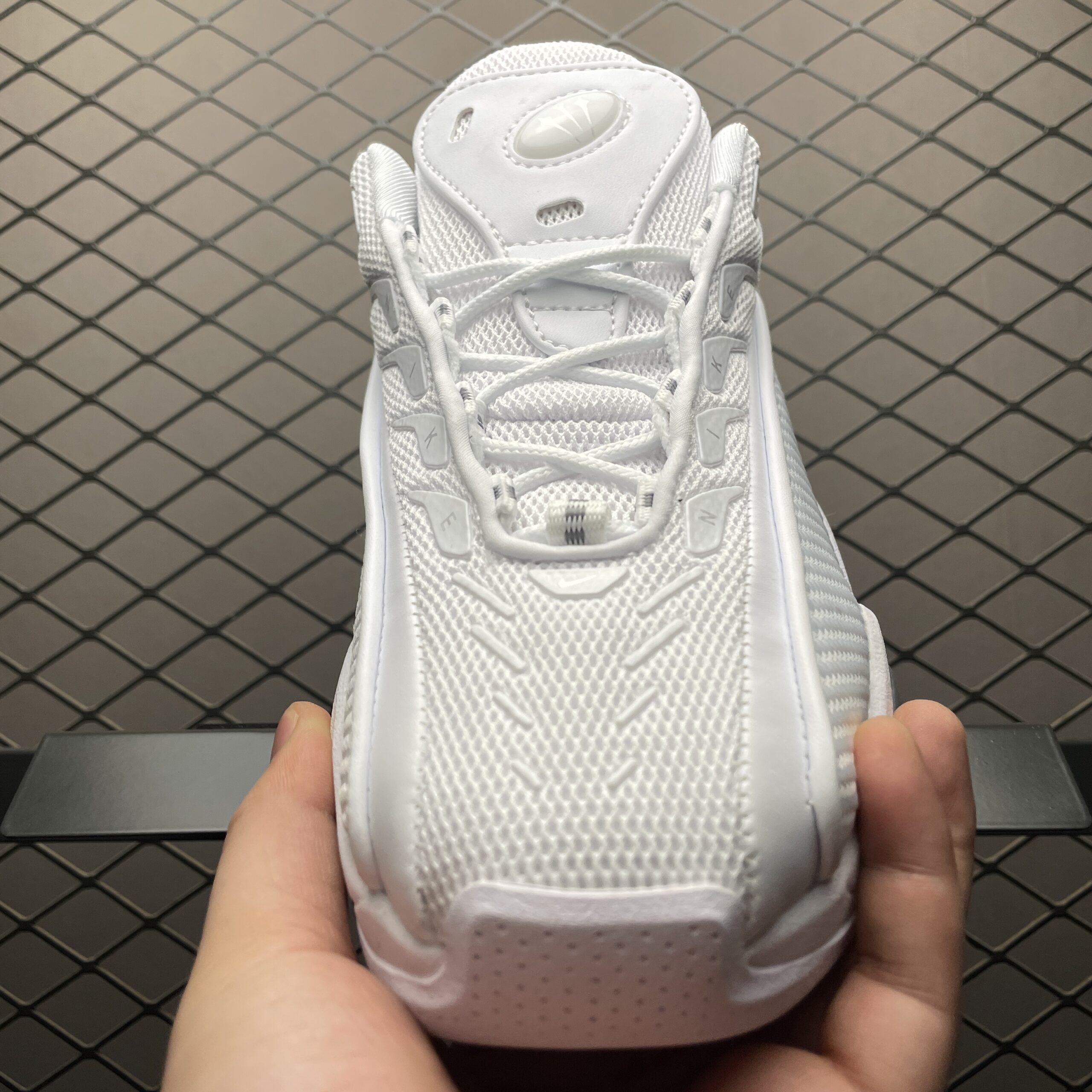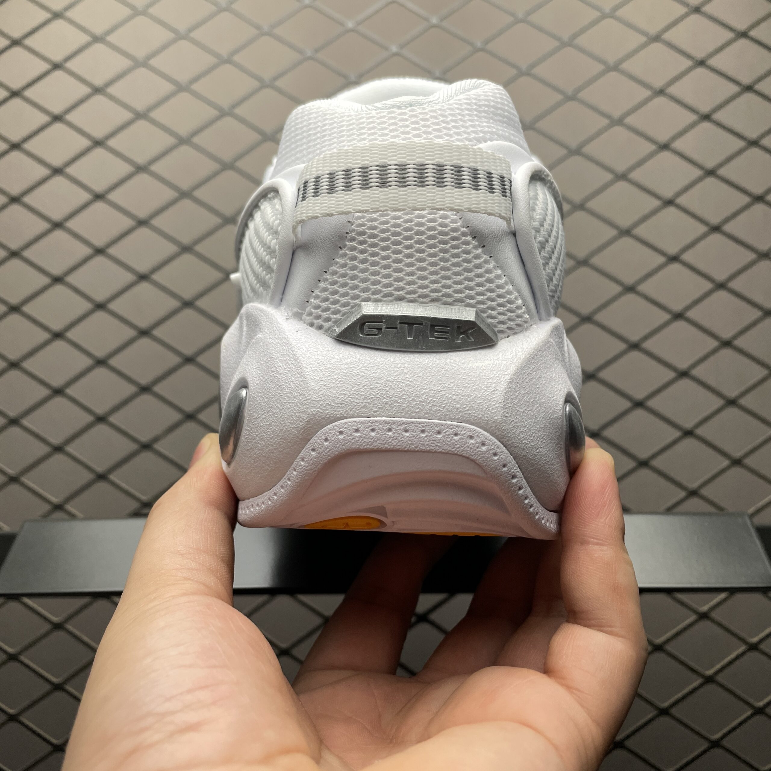 La tige de la chaussure est réalisée en matériaux synthétiques de haute qualité, offrant à la fois légèreté et durabilité. La couleur blanche prédominante est rehaussée par des accents chromés, conférant à la chaussure une allure sophistiquée et futuriste. Les détails réfléchissants ajoutent une touche de visibilité et de style, idéale pour les sorties nocturnes.