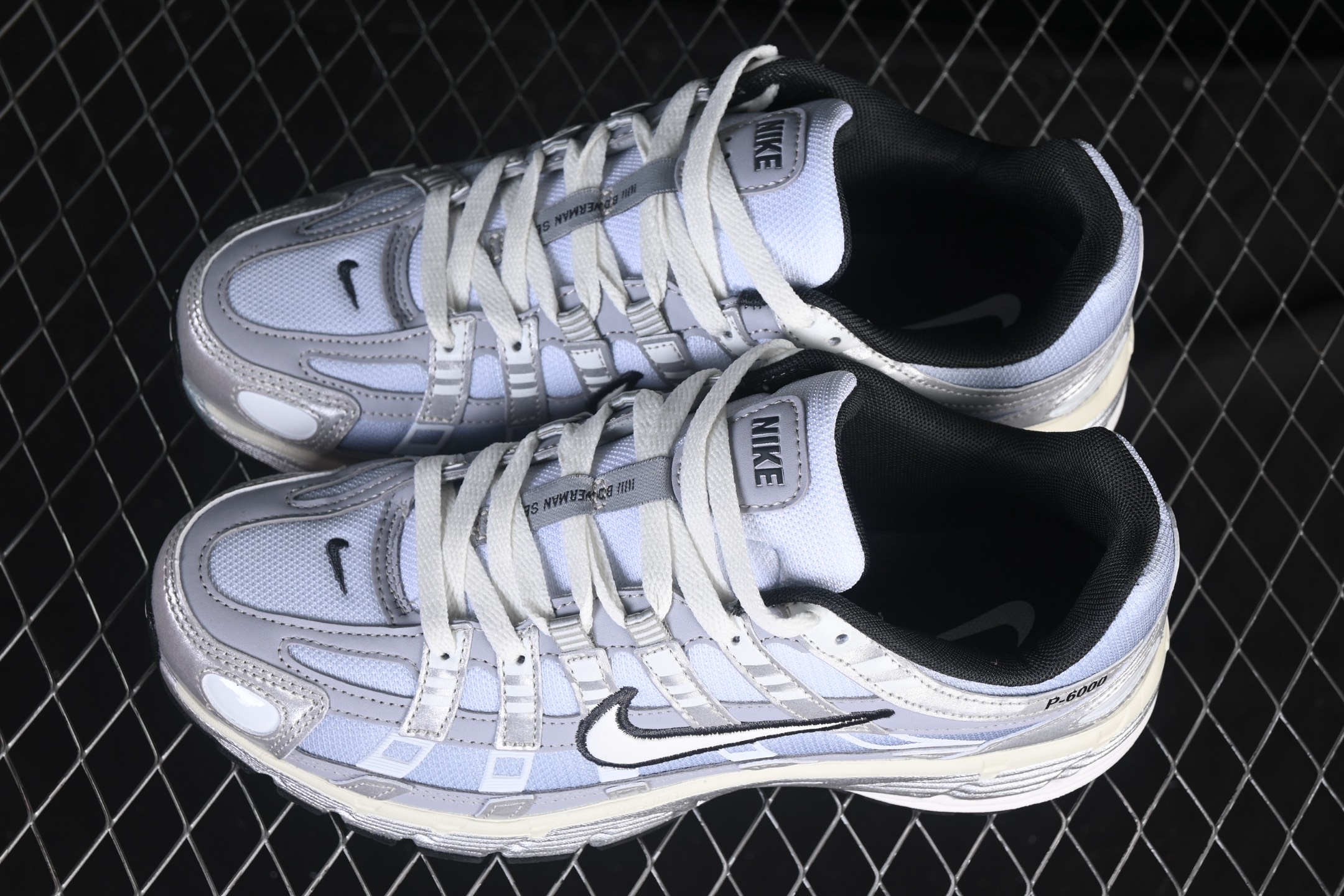 Le design de la Nike P-6000 est une combinaison de la Pegasus 2006 et 2007, offrant une allure rétro-futuriste qui ne passe pas inaperçue. La tige en mesh métallique argenté, combinée à des revêtements en cuir, offre un excellent mix de respirabilité et de durabilité. Les lignes horizontales et verticales imitent les motifs de course des chaussures des années 2000, ajoutant une touche d’originalité et de nostalgie.