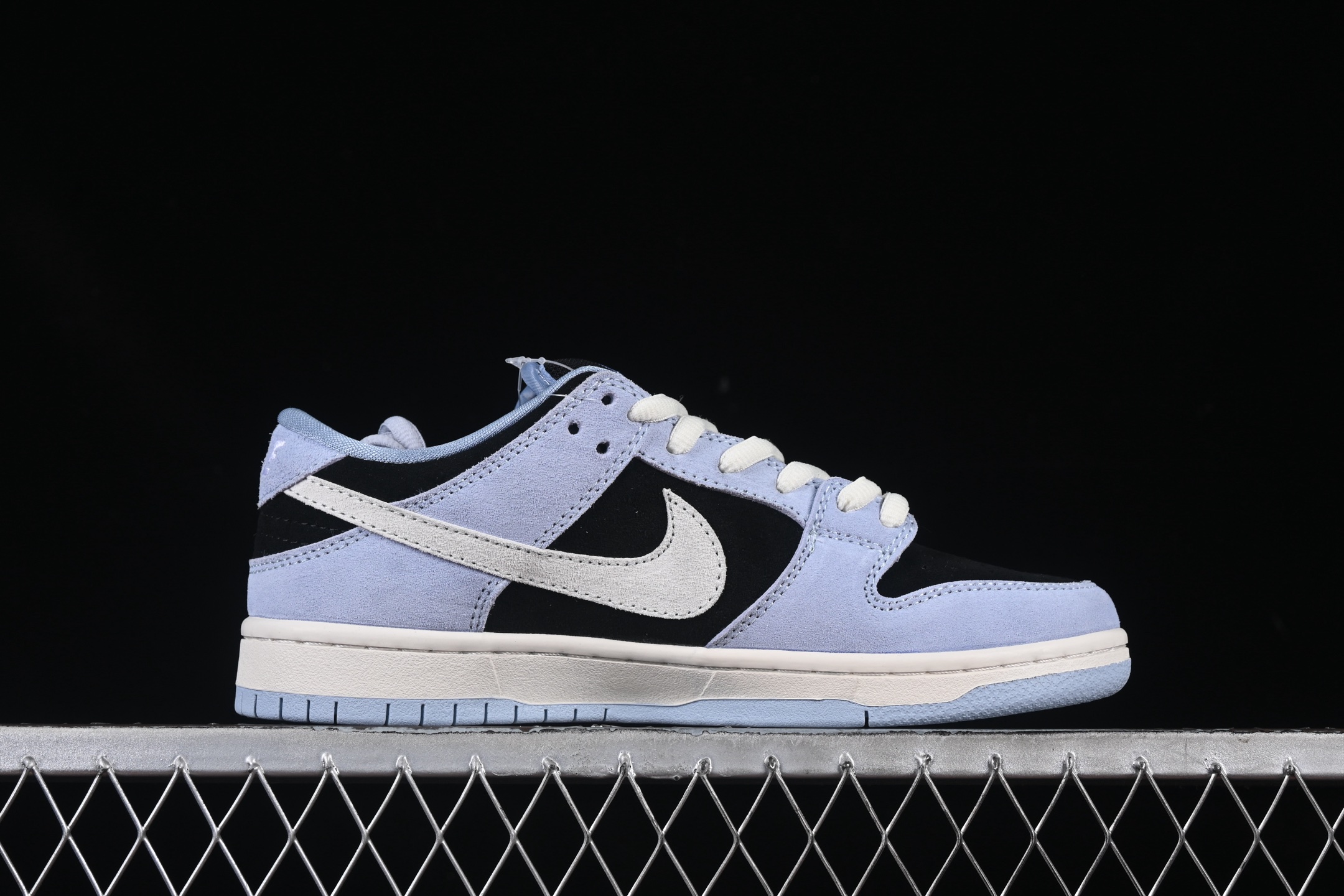 Le logo Nike est subtilement apposé sur les côtés, tandis que la languette rembourrée arbore l’étiquette Nike SB, soulignant l’appartenance à la gamme skateboarding de la marque. Les lacets noirs complètent le look, offrant un ajustement sécurisé et personnalisé.