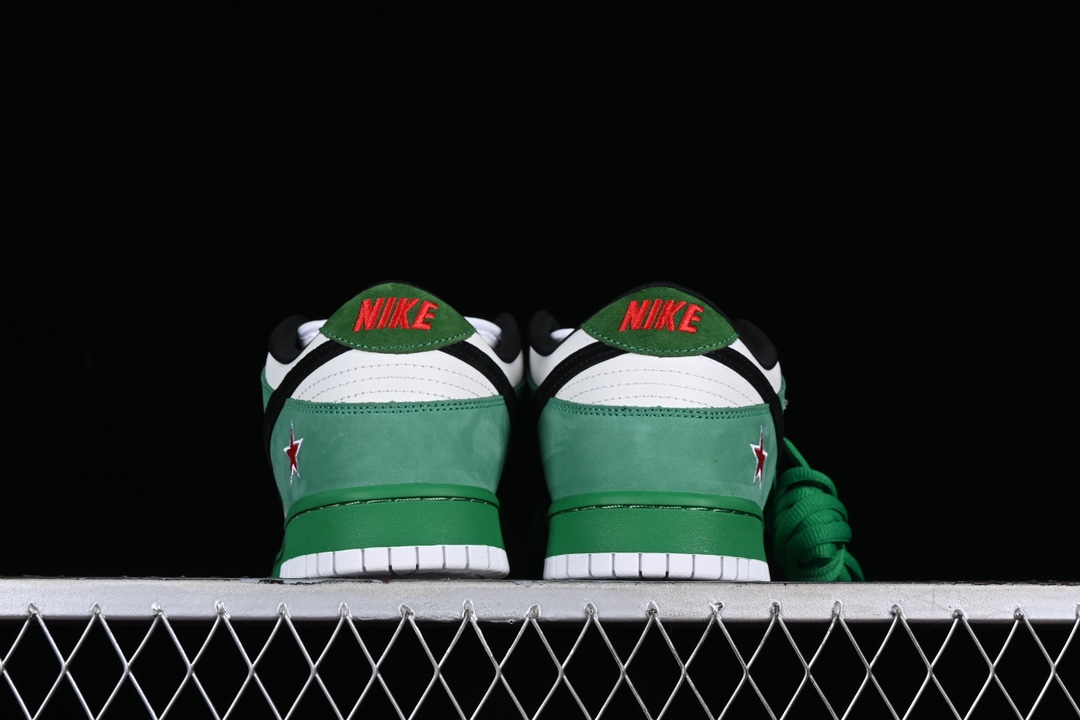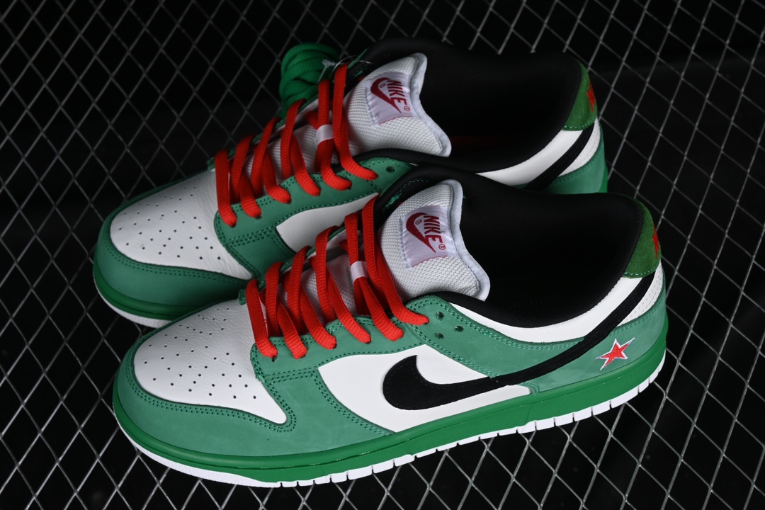 La Nike SB Dunk Low Heineken 304292-302 est une chaussure de skate inspirée de la célèbre bière Heineken. Elle est dotée d’une tige en cuir vert et daim avec des accents rouges et blancs pour rappeler les couleurs de la marque de bière. La semelle extérieure en caoutchouc offre une excellente adhérence pour les tricks de skate. La chaussure est également équipée d’une semelle intérieure Zoom Air pour un amorti confortable et une absorption des chocs. La Nike SB Dunk Low Heineken 304292-302 est un modèle très prisé des collectionneurs de sneakers et des skateurs.