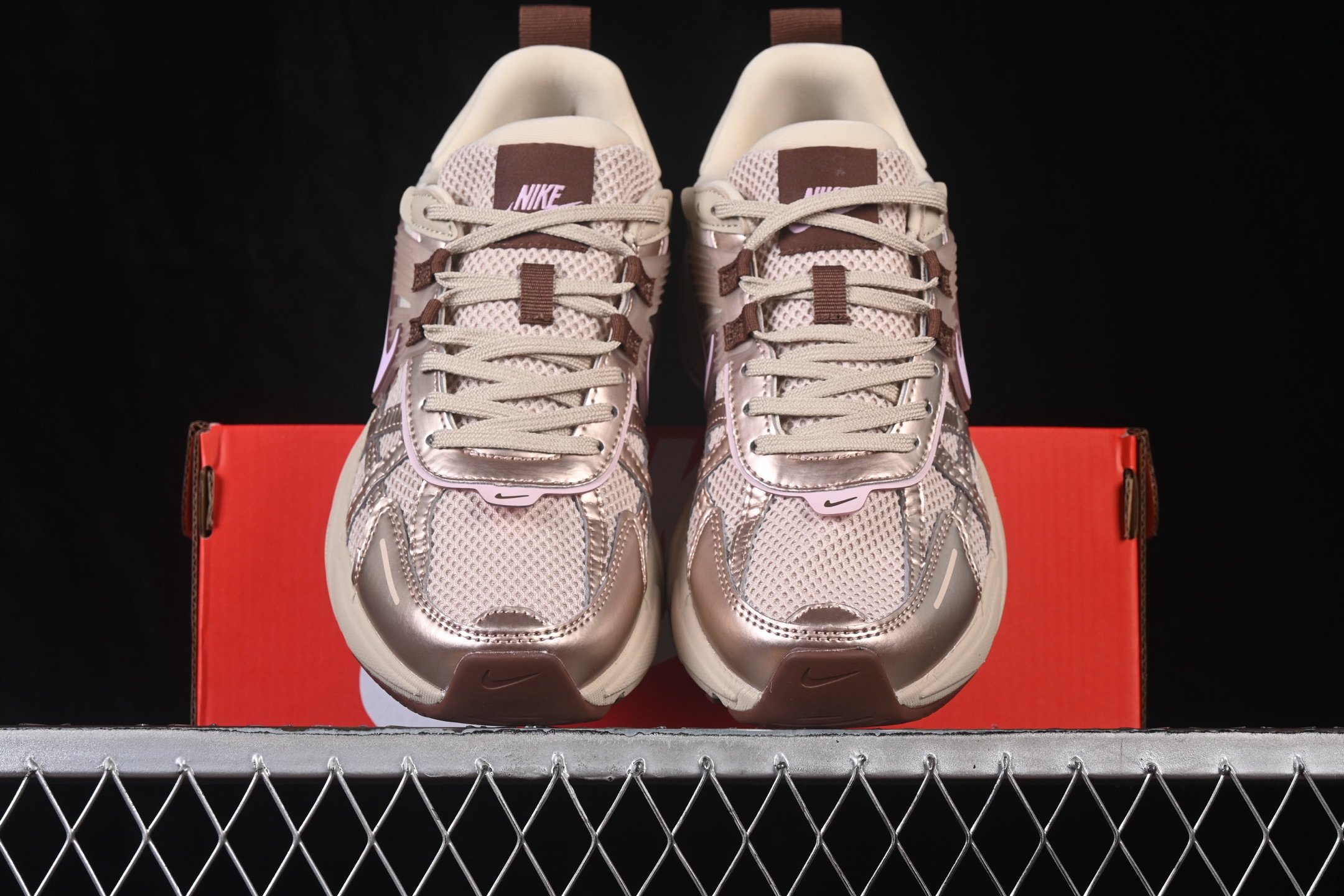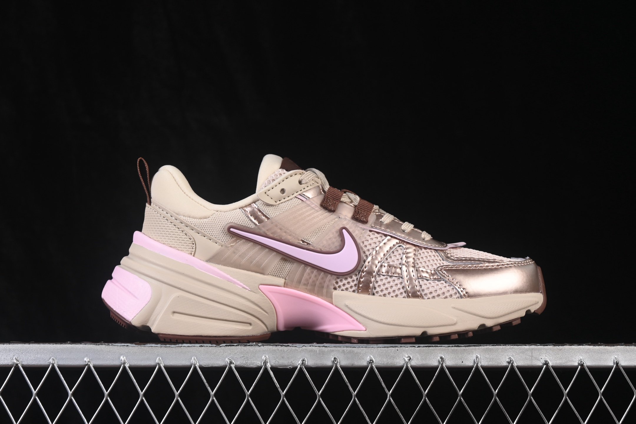 Optez pour les chaussures de course Nike V2K Run Sanddrift Fauna Brown Pink Foam FD0736-115, alliant confort, performance et style.