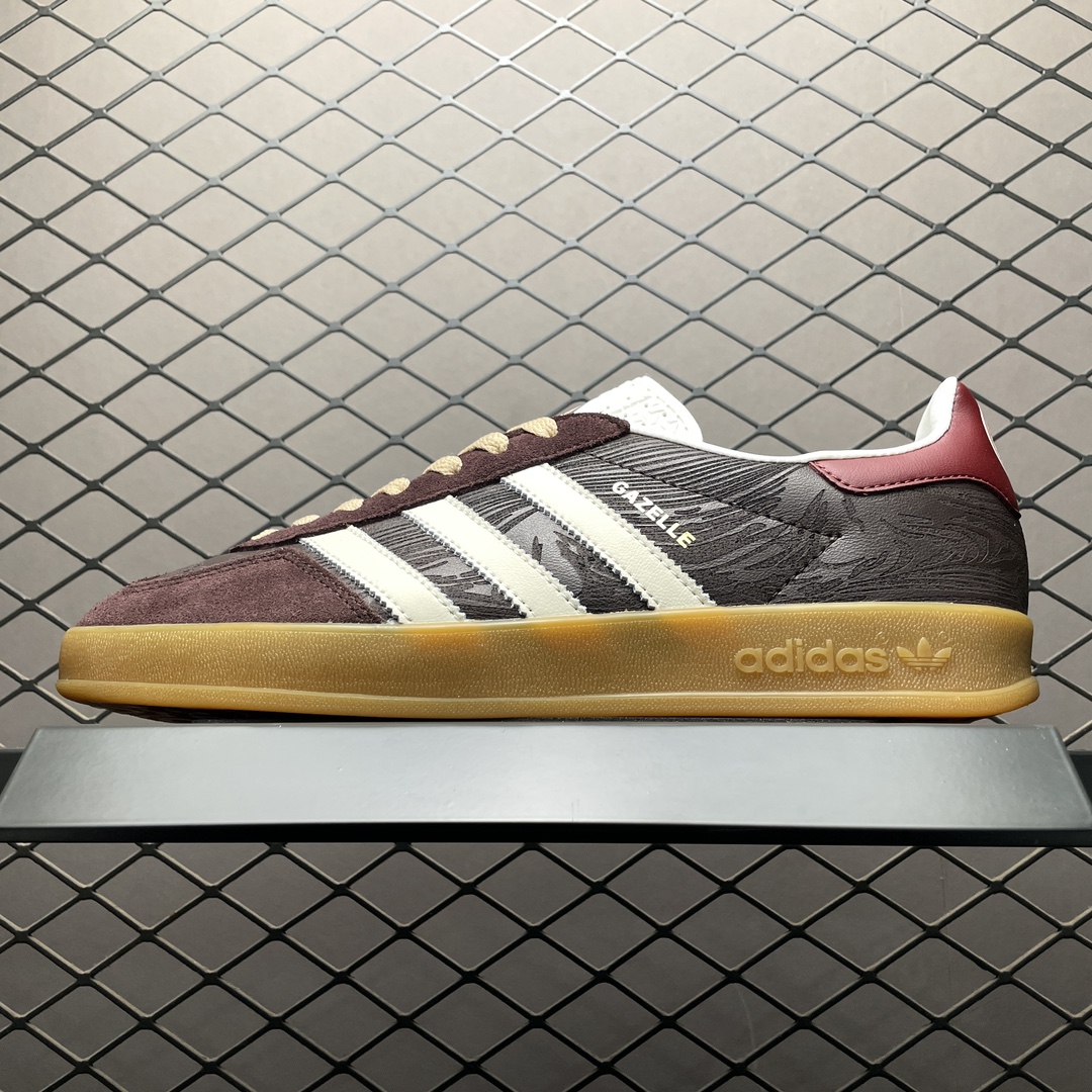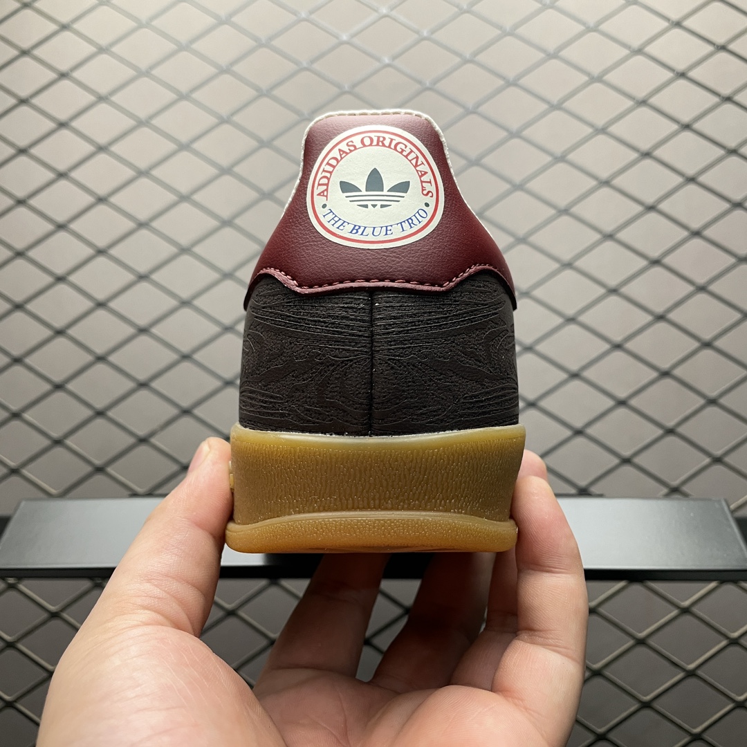 En résumé, « The Blue Trio x Gazelle Indoor Bronze Light Brown JP5671 » est une paire de sneakers qui allie style et fonctionnalité, parfaite pour ceux qui recherchent une chaussure à la fois élégante et confortable pour une utilisation quotidienne.